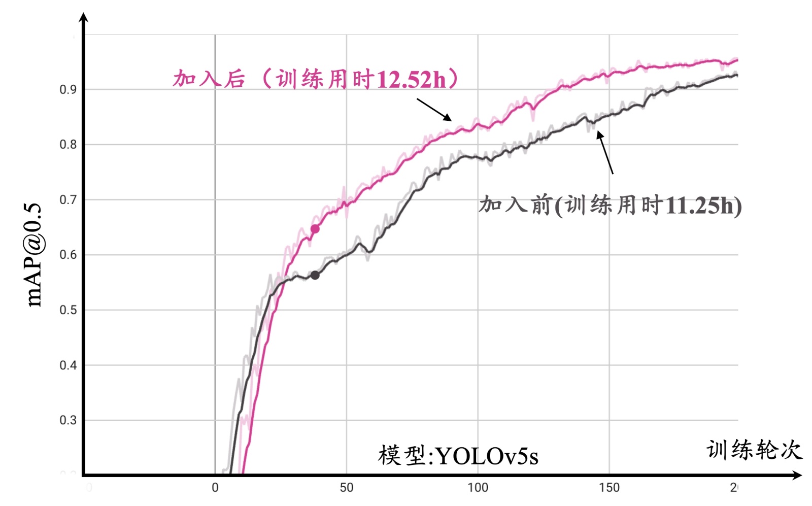 图7. YOLOv5模型加入颜色注意力机制前后mAP@0.5对比