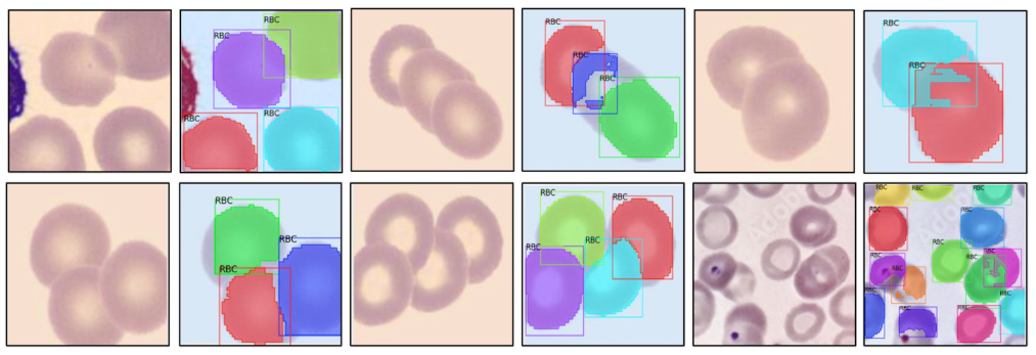 Figure 11. The trained MaskRCNN segmentation effect on adhesion blood cell instances