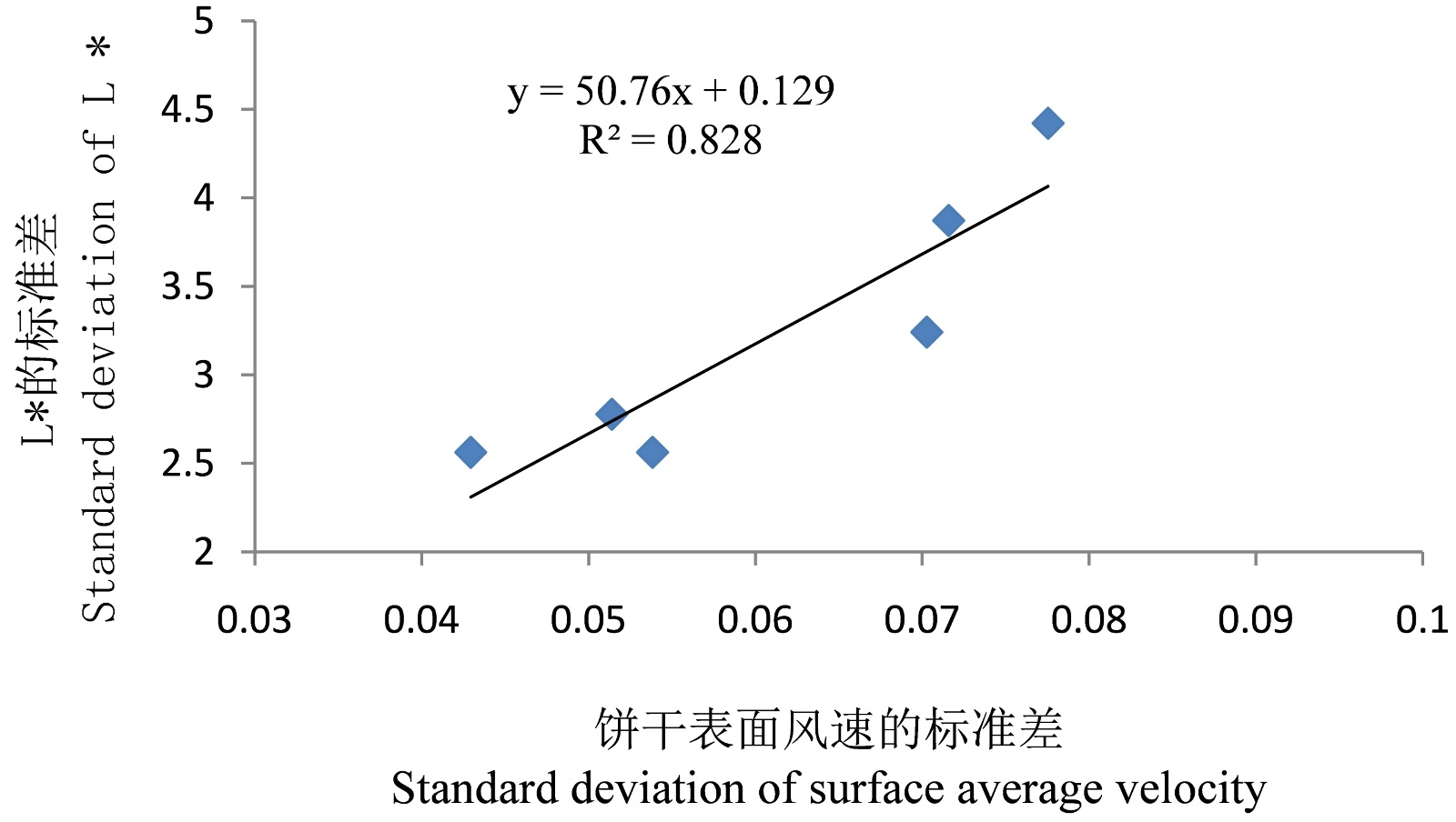 图8. 饼干表面风速的标准差与L*标准差间的相关性分析