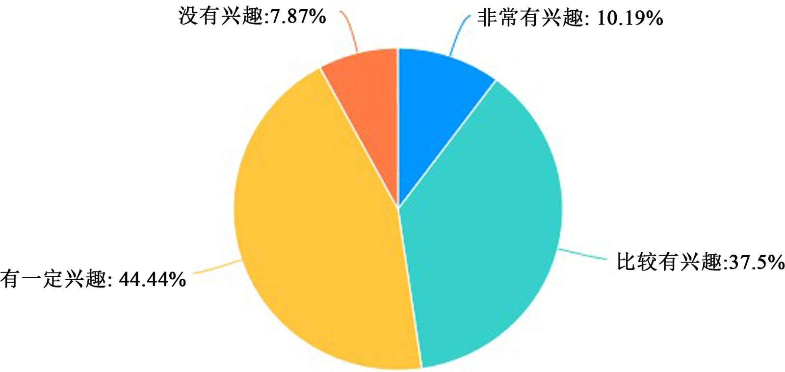 累计92.13%的参与者表现出不同程度的兴趣(含“有一定兴趣”及以上),但仅有10.19%达到“非常有兴趣”级别,显示课程对兴趣激发存在广度但深度不足(见图7)。
