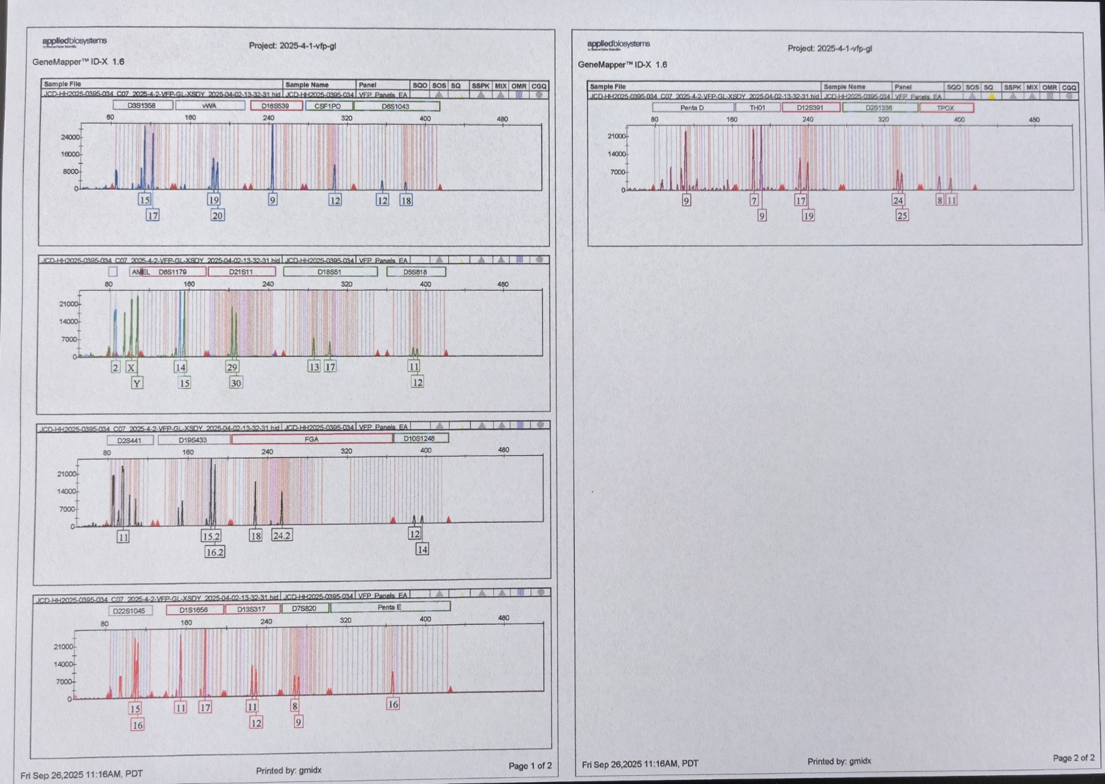 2025年3月28日接到报案称:在红河州某小区排查中发现小区1~5栋内多间毛坯房电线被盗。接到报案后,立即派技术人员进行现场勘察。经过勘察发现,嫌疑人将插座拆卸后盗窃电线。因此,技术人员对可能留下嫌疑人生物信息的螺丝进行了原物提取,对插座进行了擦拭转移提取,以房间为单位,提取生物检材百余份。为了侦破此案,送检142份进一步进行系统法医DNA分析。