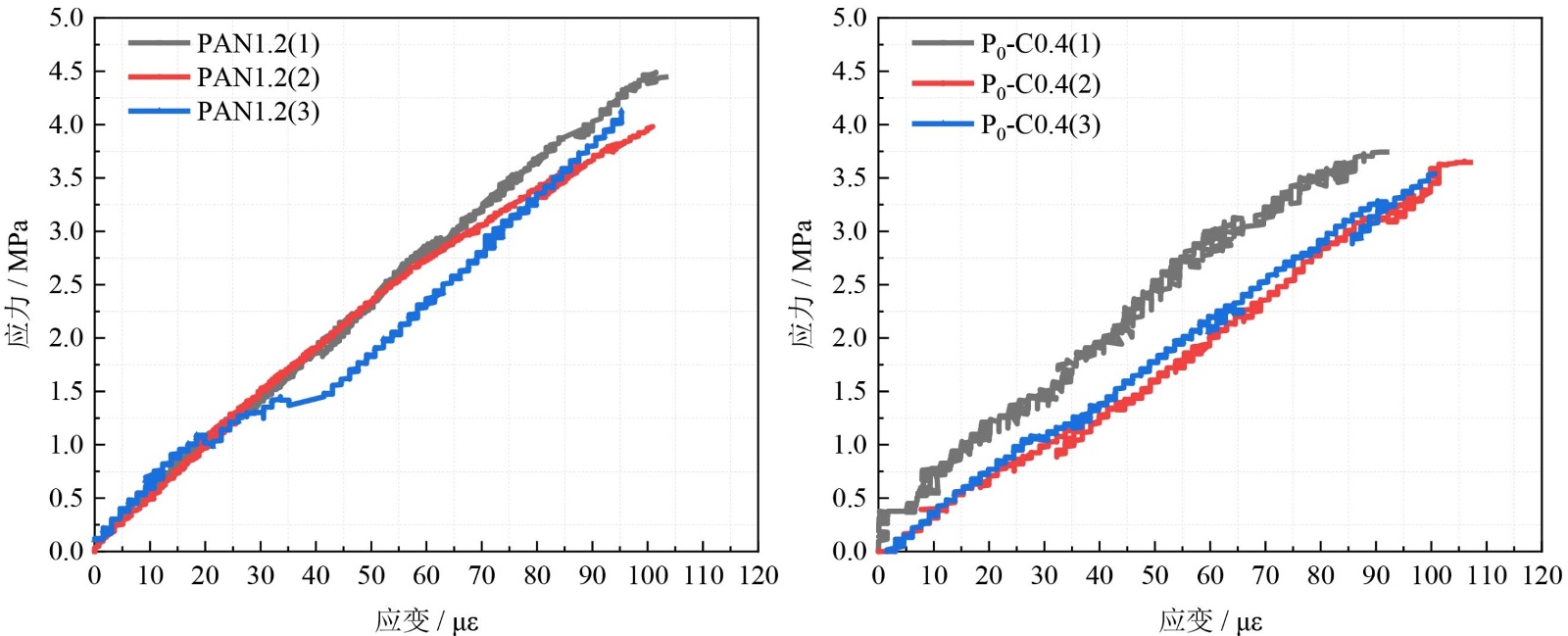I类破坏:曲线只有线弹性阶段,当达到峰值应力时基体产生单缝开裂破坏,混凝土试件破坏失效;