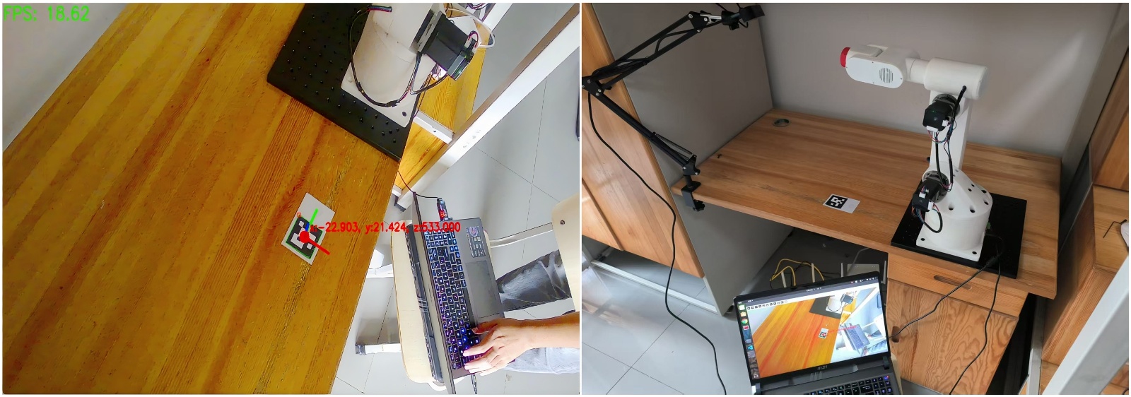 Figure 9. Experimental system for robotic arm recognition, positioning, and suction grasping