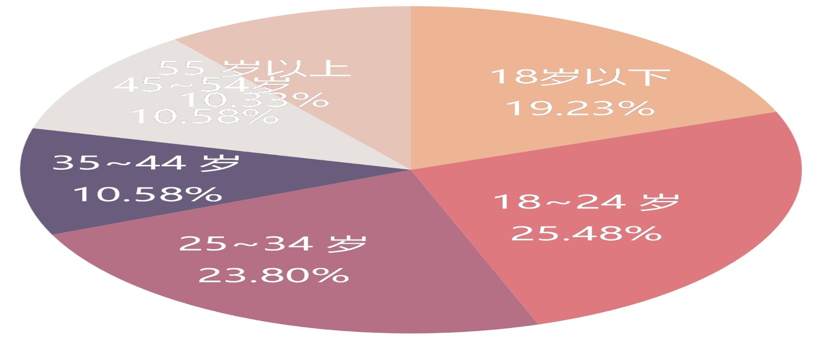 年龄层:青年(18~29岁)、中年(30~44岁)、中老年(45岁及以上);