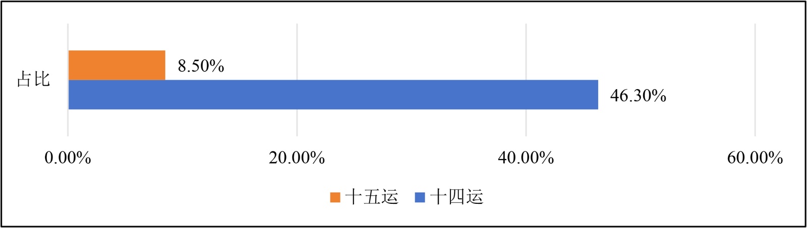 图4. 十四运和十五运竞赛场馆新建数量占比统计