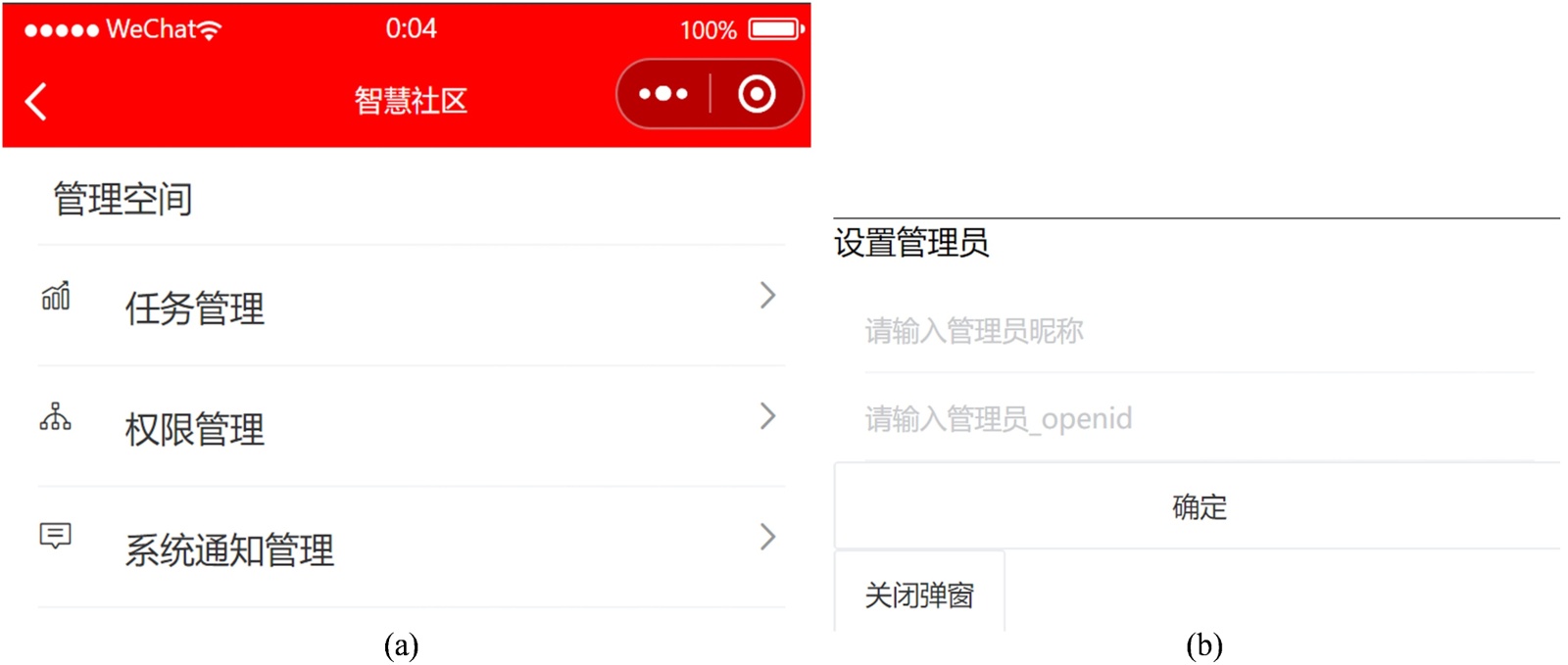 图3. 管理员部分页面,(a) 管理员后台管理页面,(b) 管理员设置页面
