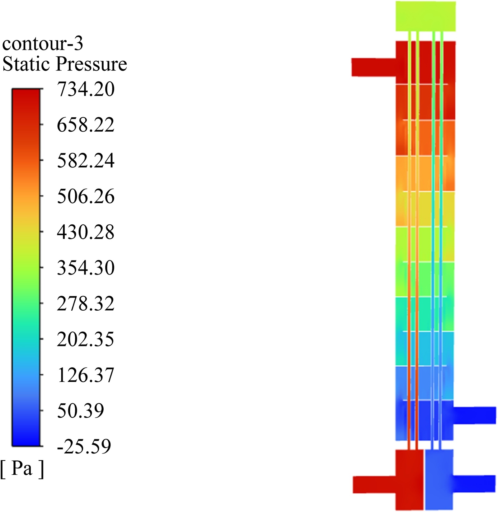 Figure 11. Cloud diagrams of pressure distribution of radial cross-section of the heat exchange tubes: (a) Without turbulence plate; (b) With turbulence plate