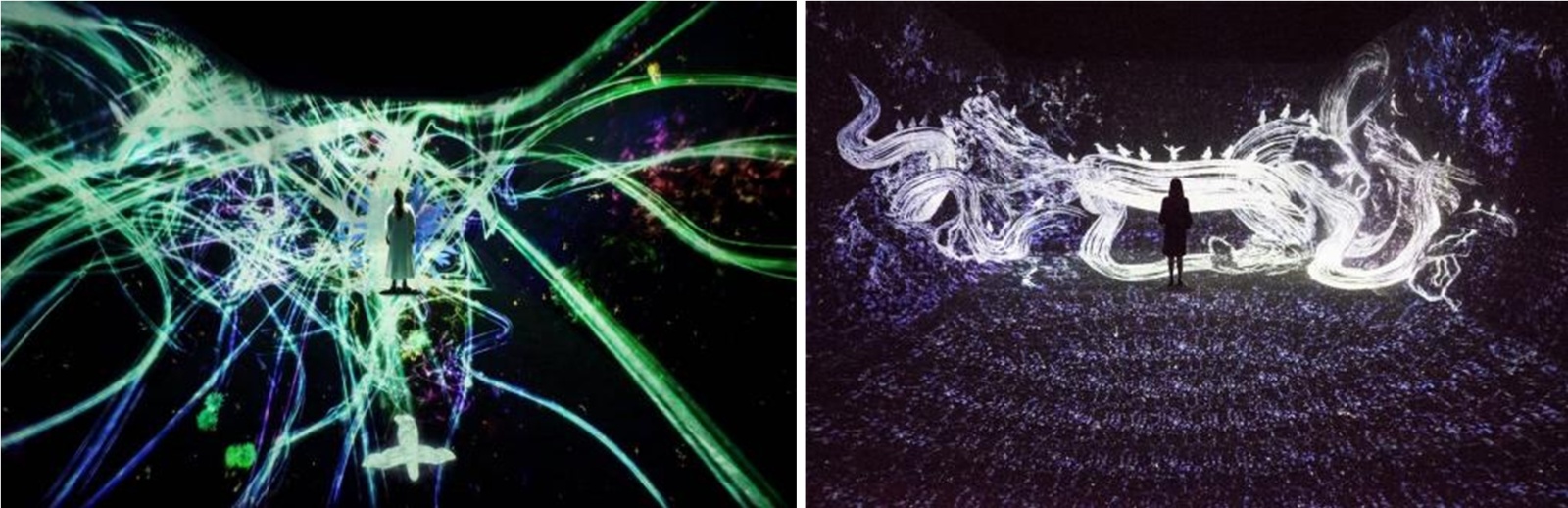 沉浸式艺术作为新型的艺术形式,在未来拥有着巨大的发展潜力,因此如何促进其健康有序的发展,是当下亟待思考的重要课题。沉浸式艺术依托数字技术等材料的组合形成的新型艺术形式,使得艺术受到更多观者的喜爱与关注。观众在体验过程中从旁观者到创作者身份的改变,极大地抓住了公众的审美和娱乐心理。再通过精美的画面、奇幻的场面和充满意趣的互动环节等,充分调动观者的五感,不仅在视觉上给了观者强大的冲击力,更是填补了以往传统艺术在听、触、嗅等方面的空白,各种感官合力的体验,共同唤起了观者的审美愉悦,从而引起共鸣。在这个体验过程中,从传统艺术的“凝神静观”转变为动态的参与,推动公众想要去了解、接触艺术的渴望。因此,在这样一个“艺术热”的背景下,越来越多的观者愿意参与到艺术创作之中,为了迎合观者的感官刺激和娱乐化的需求,艺术家们开始更倾向于和商业合作,虽然一定程度上推动了当代艺术的发展,但也带来了潜在的问题——部分作品过度注重感官冲击,从而使艺术沦为消费性的娱乐产品,呈现出娱乐化、消遣化的风险[12]。