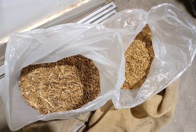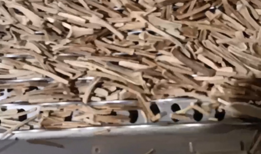 B线非叶基模式下生产后留用梗,来料流量:50 kg/min,振动频率:7.8 Hz。