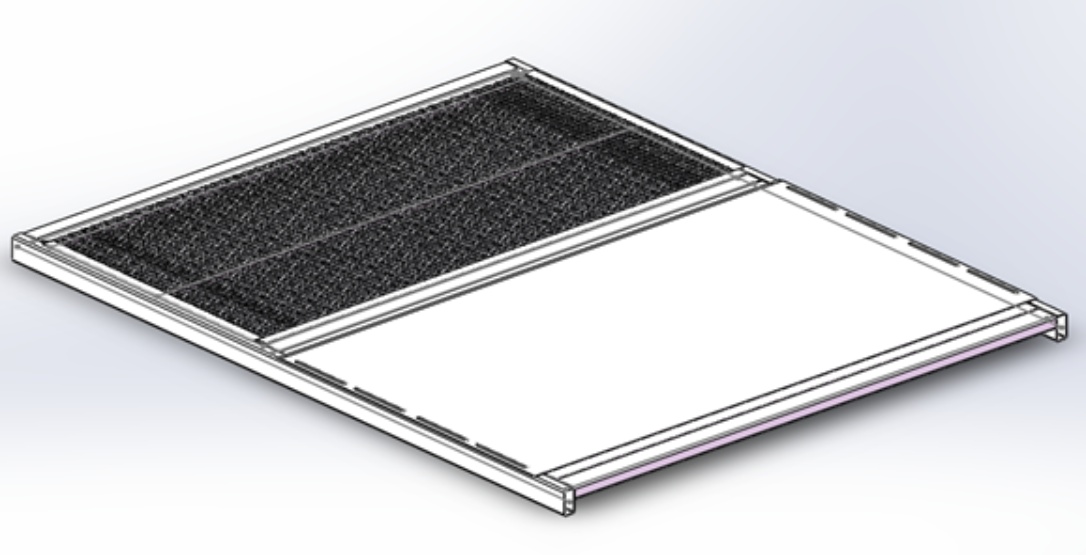 根据巴西坚果效应及厚层筛分原理,设计一种如图5所示的筛网能够短时间阻滞物料的通过,使得物料在筛面运动时形成短暂的堆积段,堆积的物料在振动的作用下小颗粒(短梗)往往更容易沉降,从而使得短梗比长梗具备更大的概率与筛面接触,从而实现较大的短梗下落概率,减少长梗的漏下概率,提升筛分精度。根据此原理小组成员设计了一种波浪形排列孔板,孔径从进料端至出料端分别为5 × 9、6 × 14、7 × 18,排列孔板两端与支撑框架平齐,中间下陷10 mm,从而实现物料的堆积筛分。
