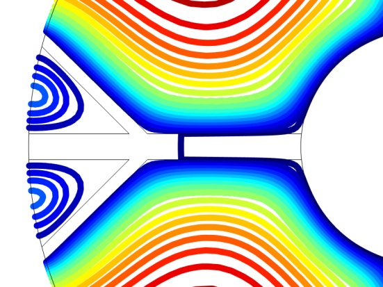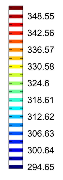 本文选择月桂酸作为相变材料,肋片的材料取铝合金6061,利用COMSOL软件建立数值模拟的传热模型,对模型的温度变化、相变界面变化进行瞬时研究,获得以下结论: