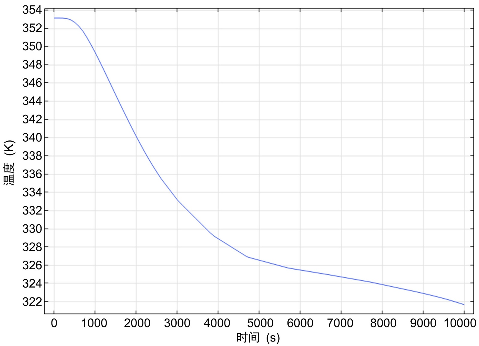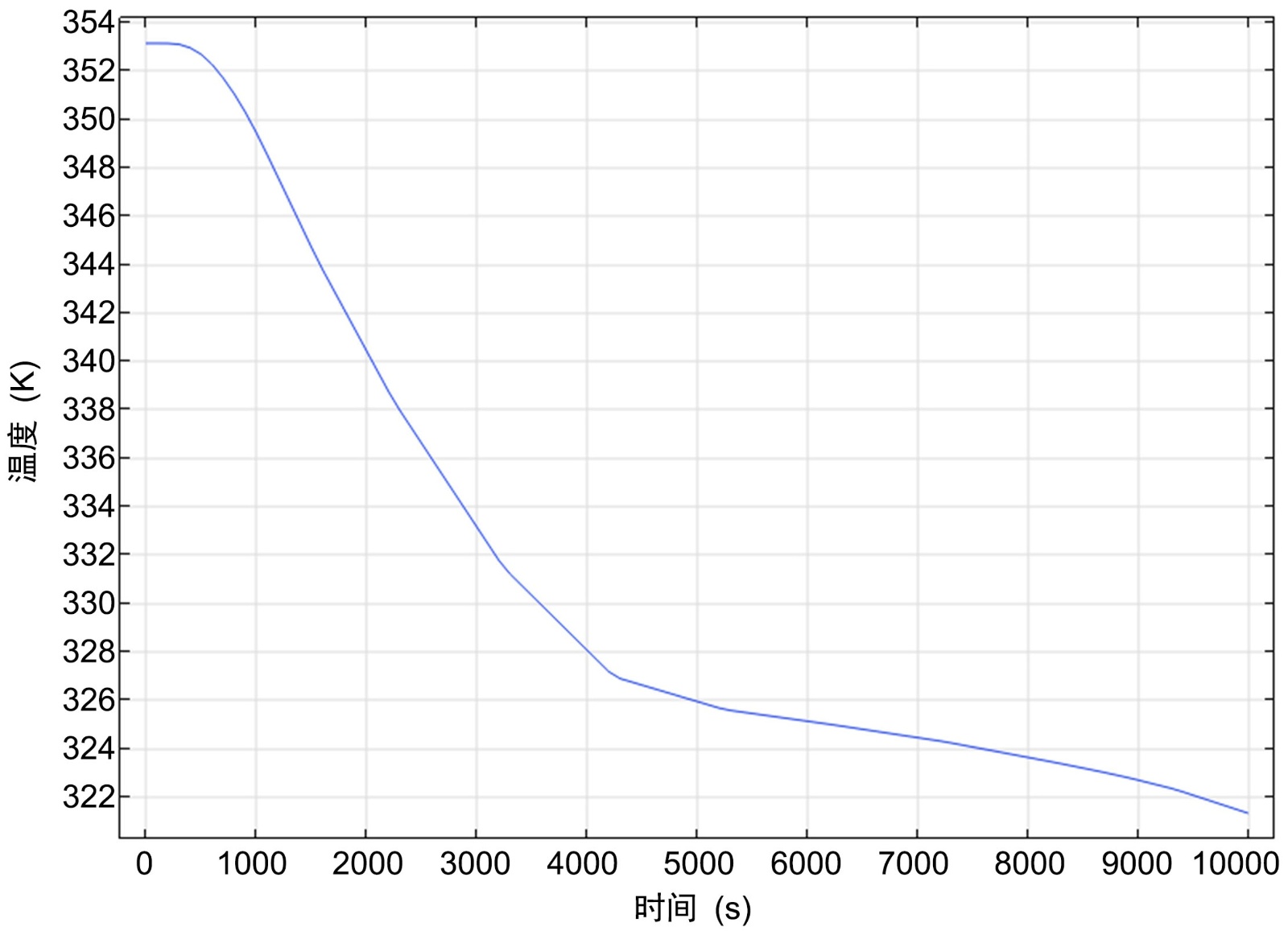 在初始时间肋片和相变材料的温度是353.15 K,内部传热管道的温度为293.15 K;