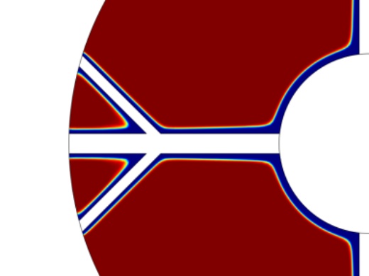 系统中的传热方式主要分为三种,分别为导热传热、相变传热和对流传热。导热传热在树状肋结构的内部进行,以及在相变材料变成固态时会进行导热传热,相变区域的传热主要是相变传热,材料物相在发生转变时热量也在不断地进行传递,相变材料的凝固过程会放热,由于对流过程没有受到外部额外施加的力,属于自然对流。