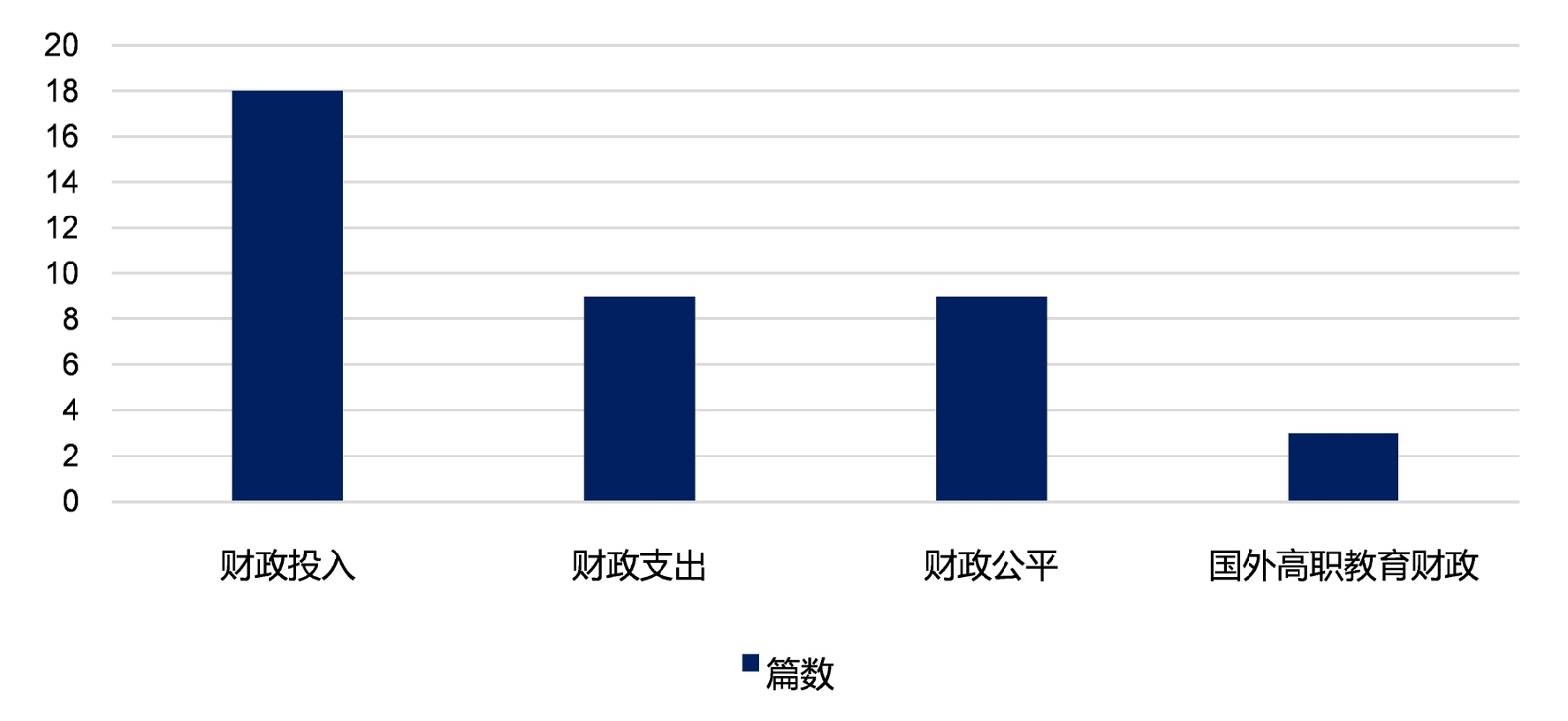 针对高等职业教育财政研究的内容主要分为四个维度:财政投入、财政支出、财政公平和国外高的职业教育财政(如表2、图2所示)。下面对这四个方面的主要内容和观点做一综述。