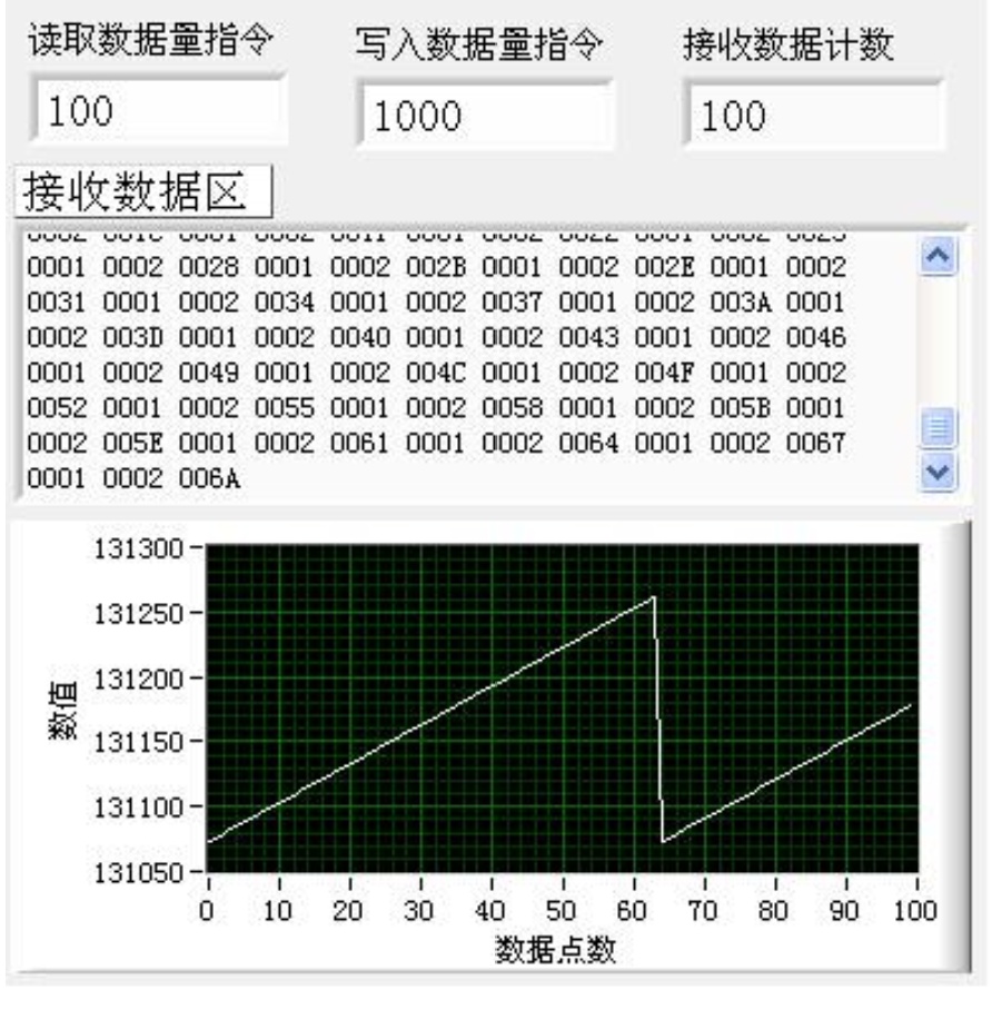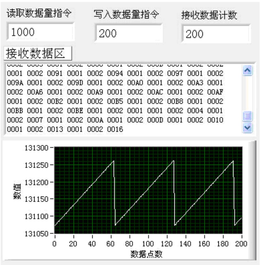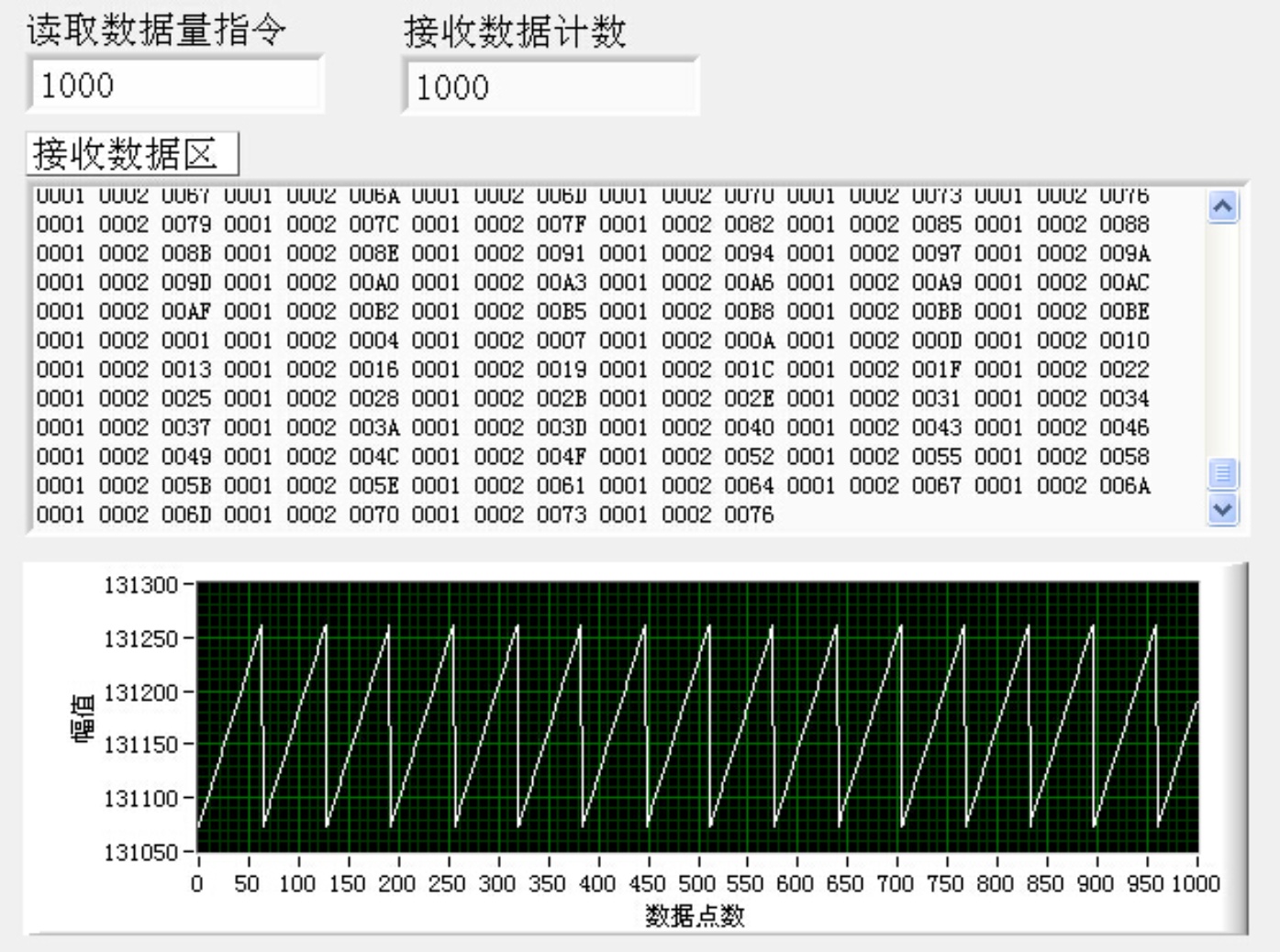 (2) 通过上位机软件发送指令给SDRAM控制器,对存储的1000个数据进行读取,在上位机上显示读取的数据并绘制波形,同时对读取的数据个数进行计数。