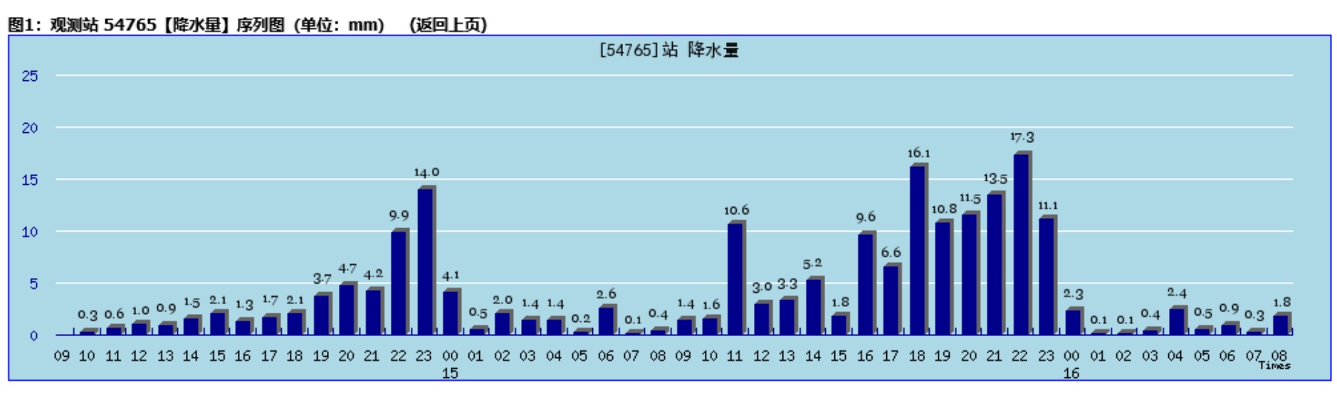 图3. 蓬莱站2022年9月14~16日逐时降水量(单位:mm)
