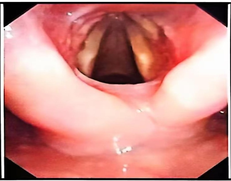 Figure 3. Shows the postoperative changes of the laryngeal web under electronic laryngoscopy in the patient