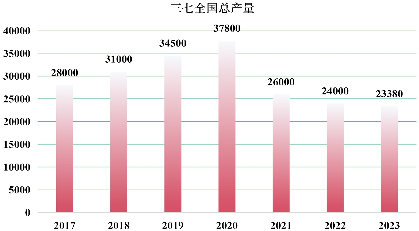 图1. 2017~2023年中国三七产量(单位:万吨)