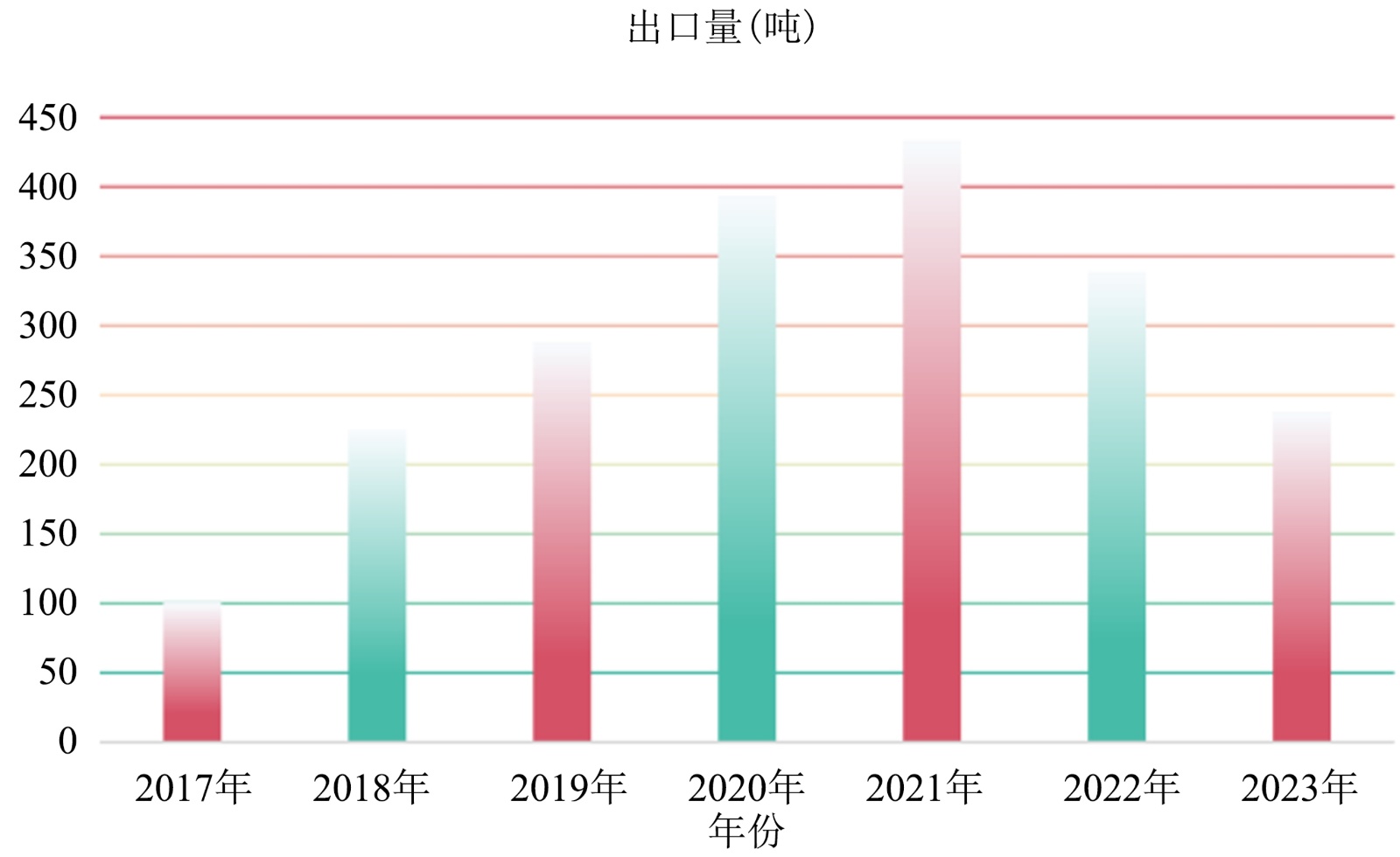Figure 3. China’s annual export volume from 2017 to 2023 (Unit: tons)