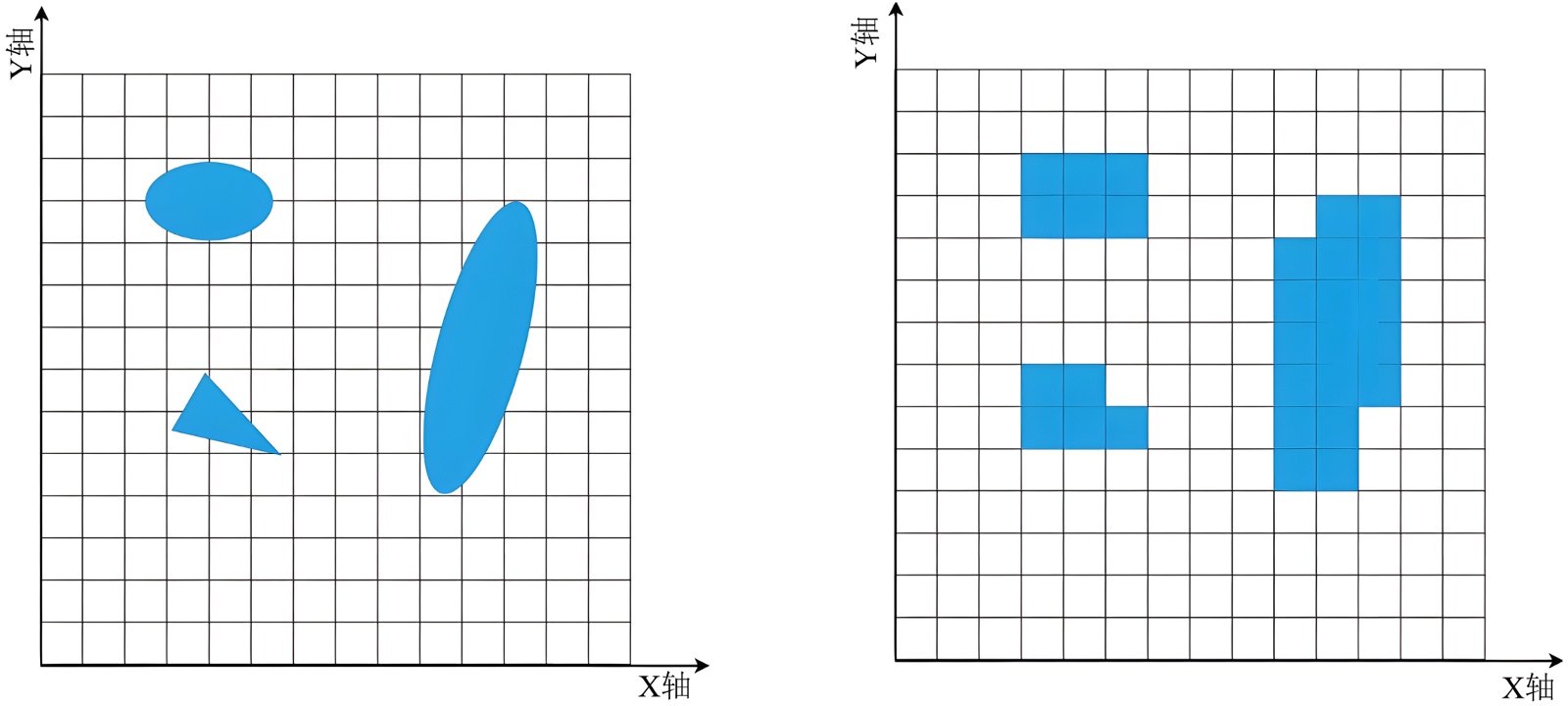 实际使用场景的障碍物通常是不规则物体,为了确保机器人移动过程与障碍物保持一定安全距离,减少碰撞可能性,本研究对障碍物进行膨胀处理[8]:若障碍物完全占据栅格,则直接将当前栅格认定为障碍区域;若当前栅格存在障碍物,但未完全占据,将整个栅格进行膨胀,依旧认为该栅格全部为障碍物区域,见图1所示。