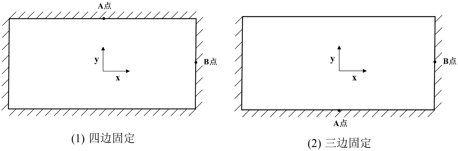 在露顶式闸门中,面板被梁系分割成若干矩形区格,根据弹性薄板理论[7],面板的局部弯曲应力,可视边界情况,按四边固定、三边固定等承受均布荷载计算,如图2所示面板区格形式,A点为支承长边中点,B点位支承短边中点。每个区格的面板在承受水压力后,会产生弯曲变形,将一部分荷载直接以弯矩的形式承受,另一部分则作为支座反力传递给周围的支承梁。面板主要以弯曲的形式消耗小部分荷载,将大部分荷载传递到梁系中。