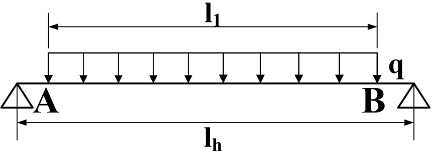 次梁和纵梁平行布置,将面板分为小的区格,水压力传递到次梁,此时可按承受均布荷载的多跨连续梁计算,受力简图如图5所示。极大地减小了主梁直接承受的荷载面积,且由于梁系间荷载的传递,主梁的计算跨度