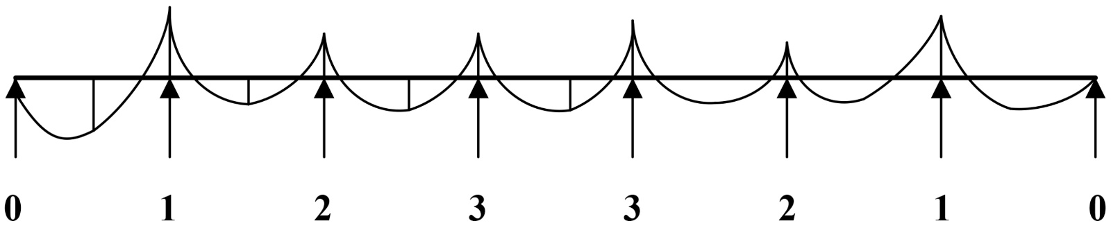 Figure 5. Schematic diagram of internal forces in secondary beams for continuous beam calculations
