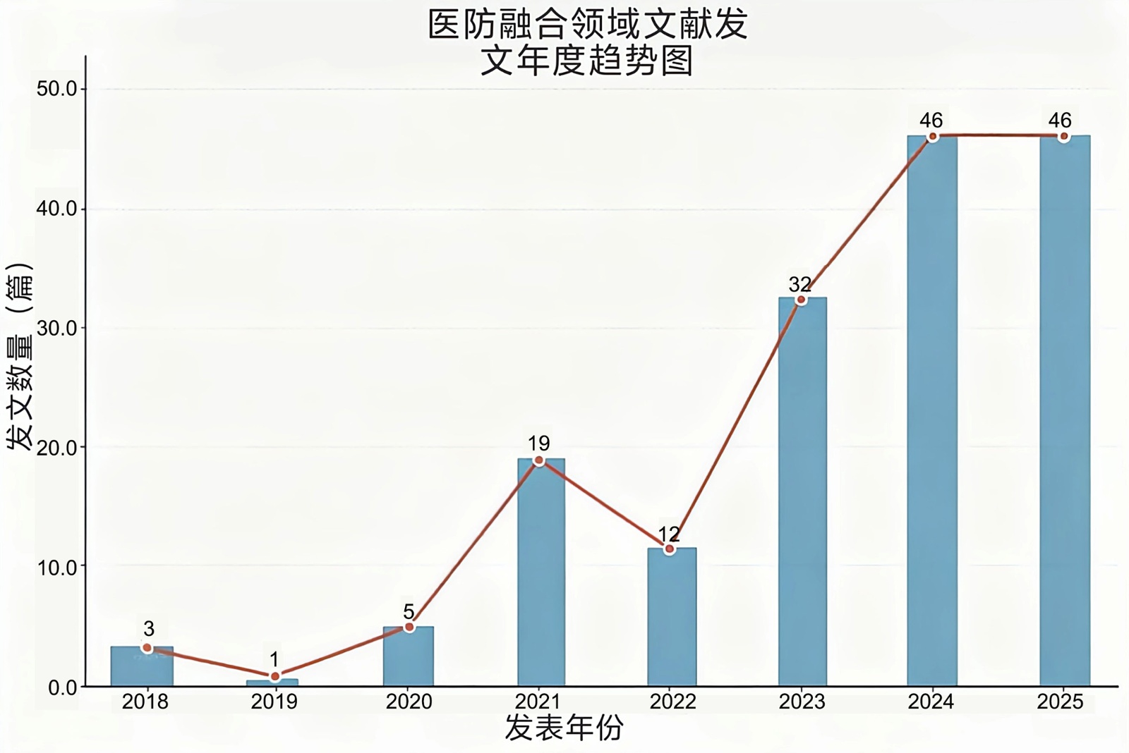 图1. 获医防融合领域文献发文年度趋势图