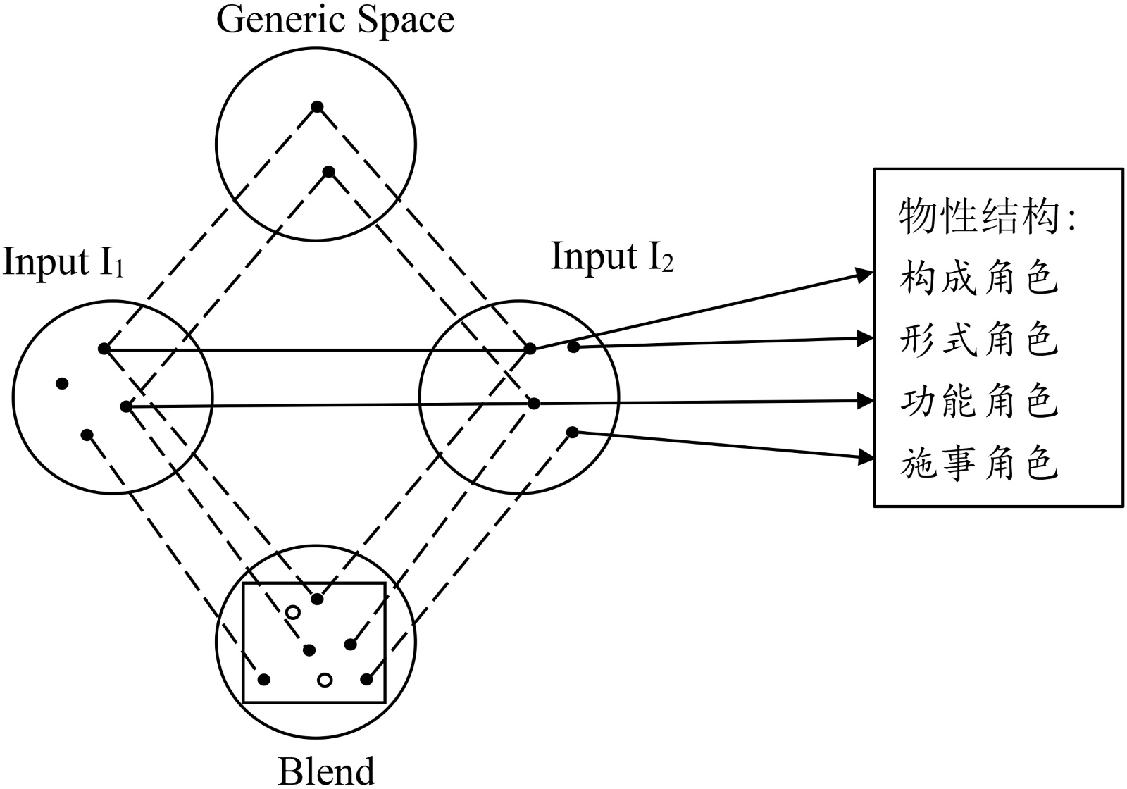 张辉、范瑞萍(2008)在讨论汉语形名组合意义建构时提出,应将物性结构内嵌于概念整合网络,为名词的概念内容提供抽象的背景结构信息[11]。在此基础上,张辉、范瑞萍(2008)对原有的概念整合网络进行了调整,请看图1。