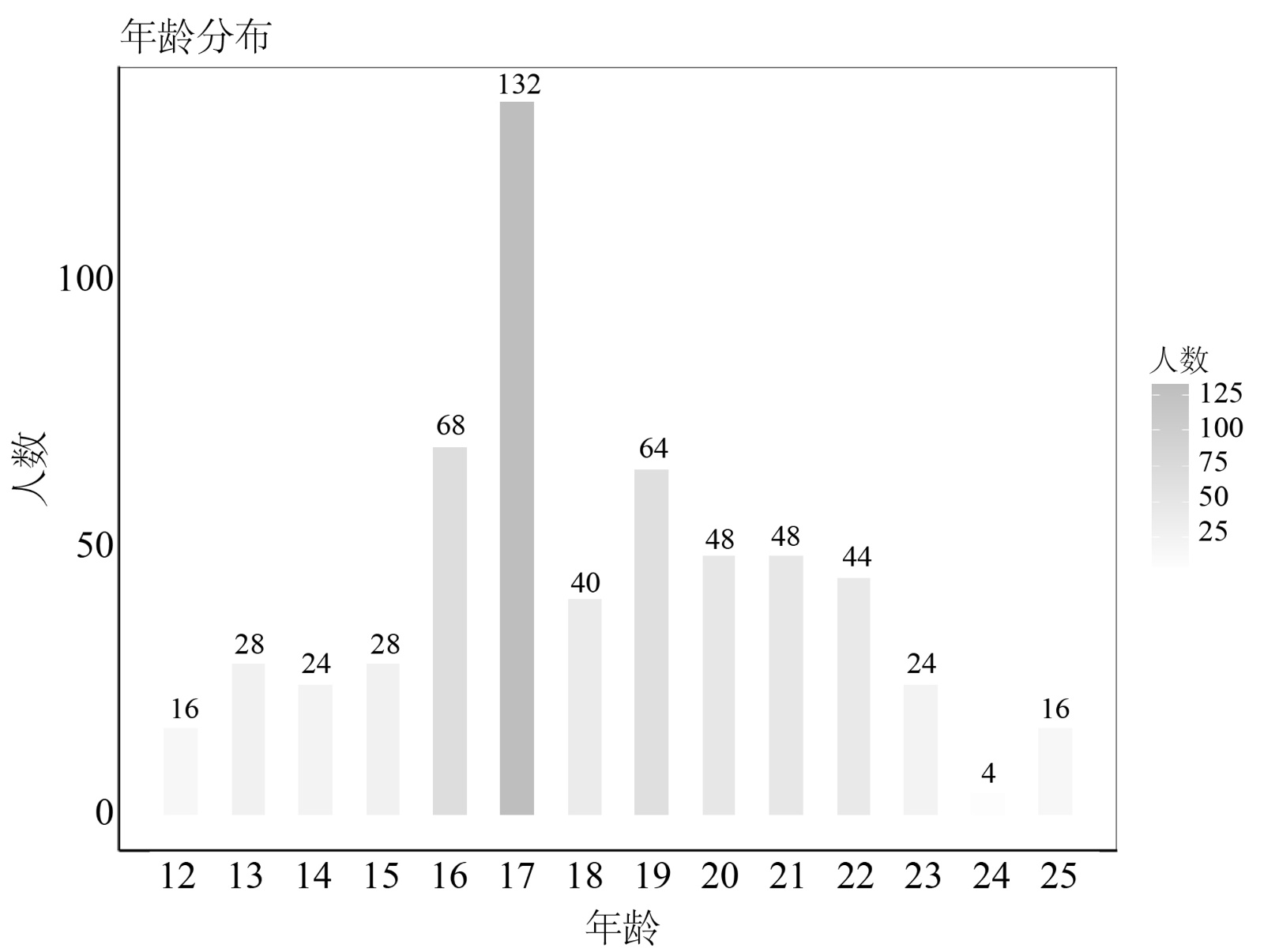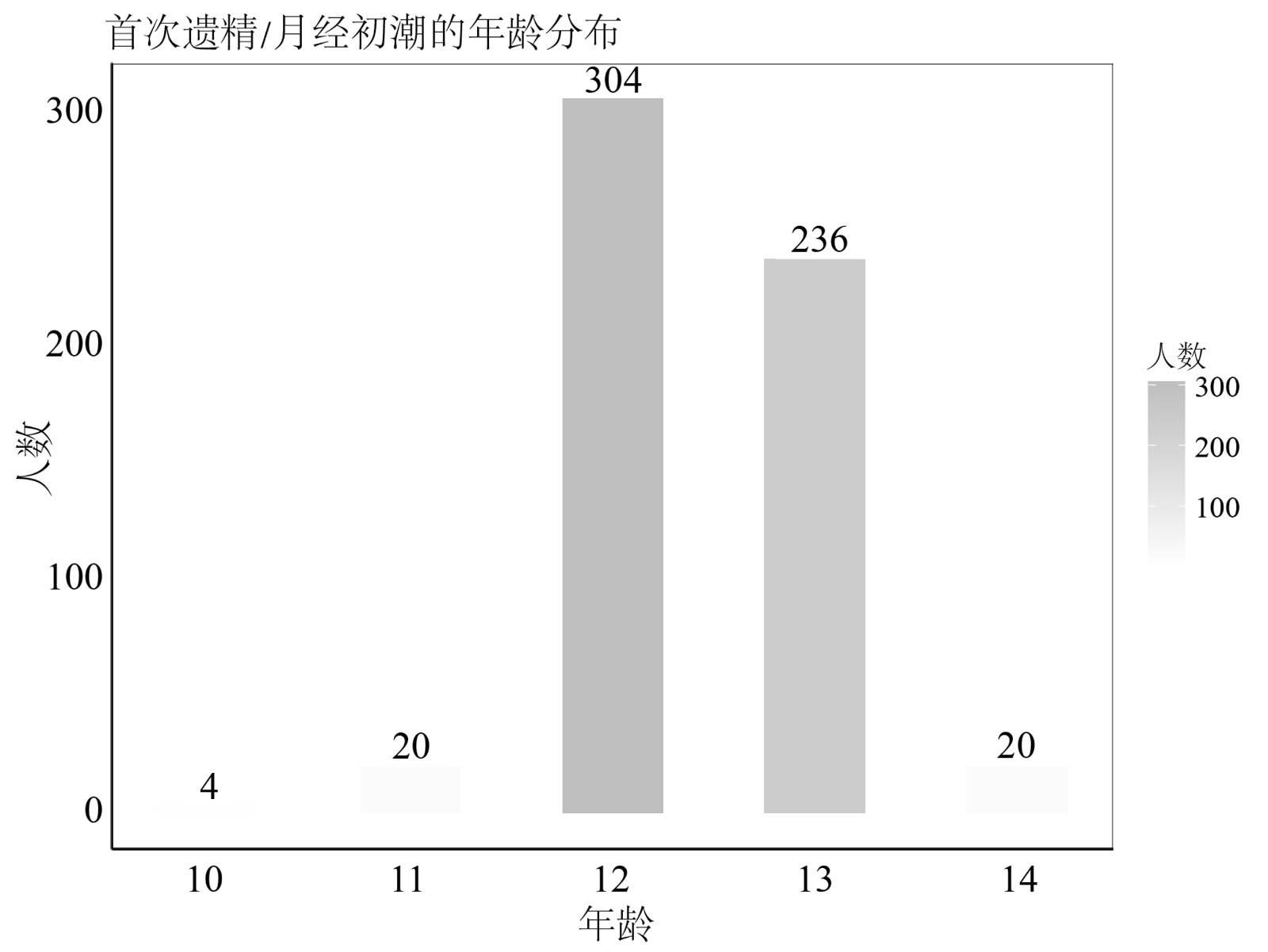 图2. 受访者的首次遗精/月经初潮的年龄分布