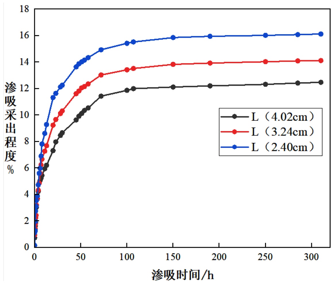 图3. 不同岩心长度的渗吸采出程度