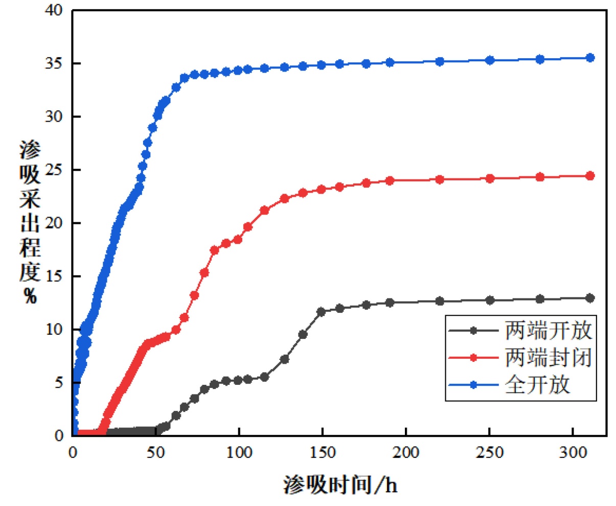 图5. 不同边界条件下的岩心渗吸采出程度