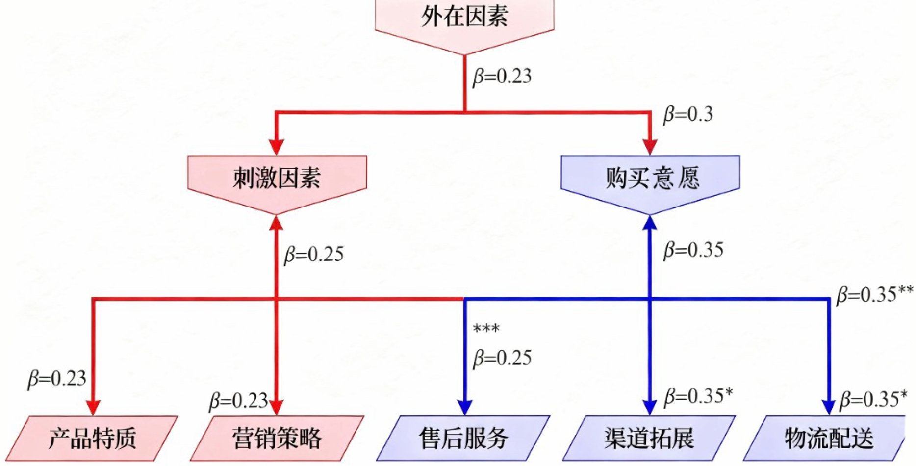 图2. 外在因素、刺激因素对购买意愿的影响路径模型