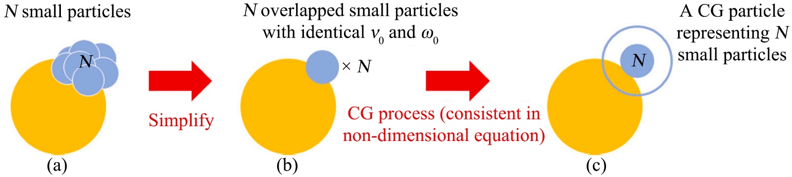 粗粒化(Coarse-Graining, CG)技术的核心是用少量粗颗粒(CG颗粒)等效替代大量原始颗粒,同时通过“无量纲接触方程一致性”保证微观接触力学与宏观运动规律的等效性,避免因颗粒数量减少导致的物理失真。