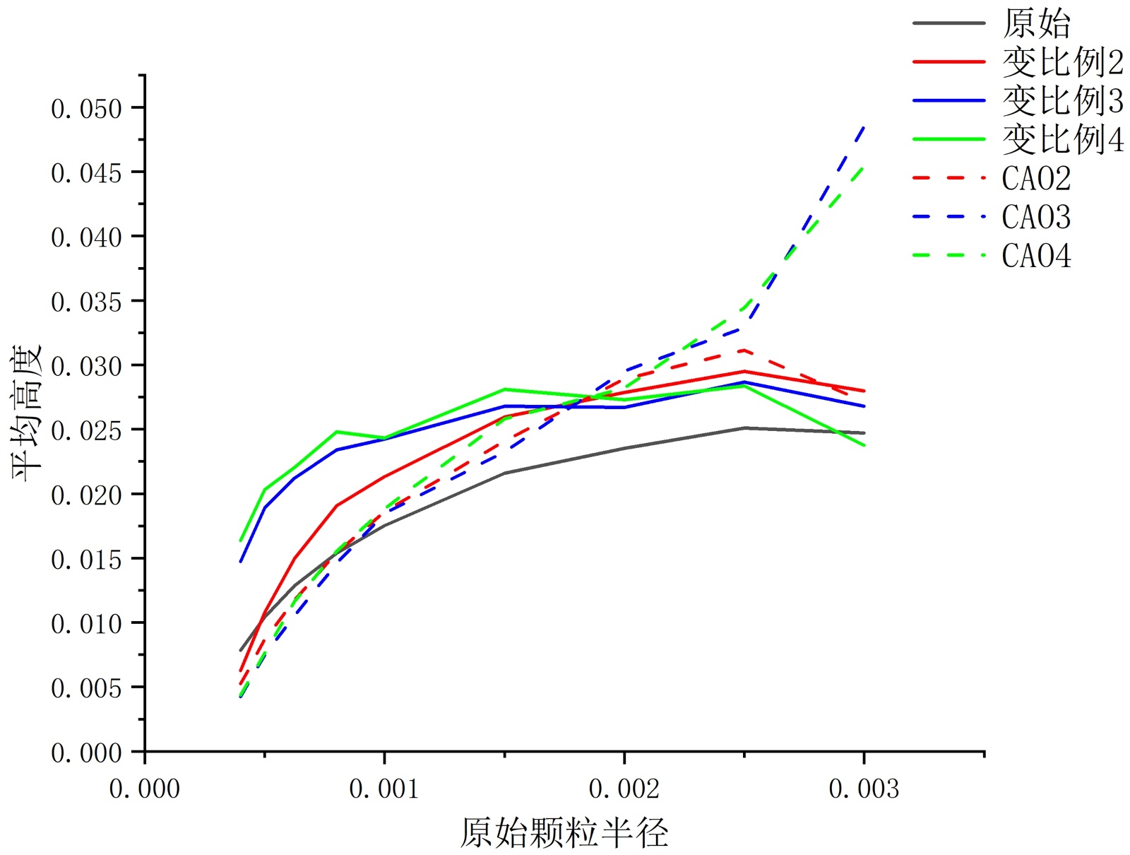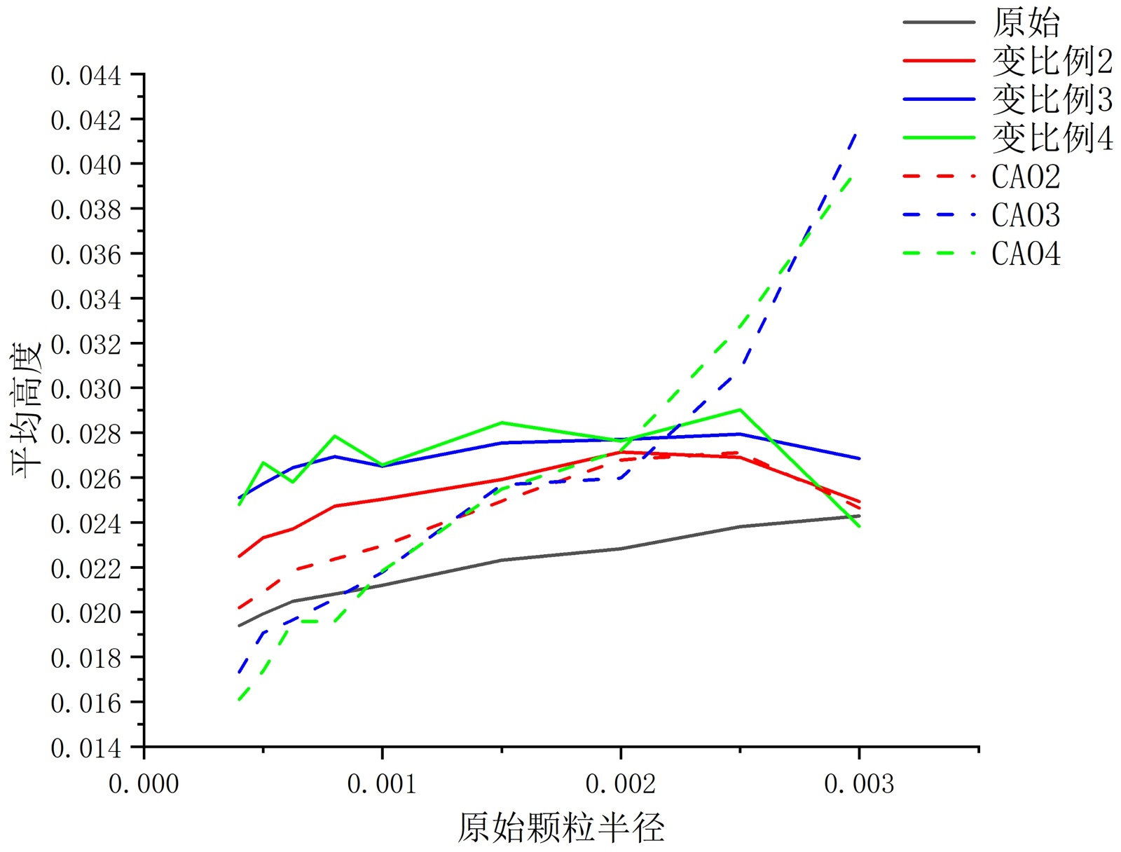 通过将各个模型在不同粗粒比条件下所得到的模拟结果中对应各粒径颗粒的平均高度,与原始模拟的对应结果进行系统对比,进而对模型的实际效果展开验证。