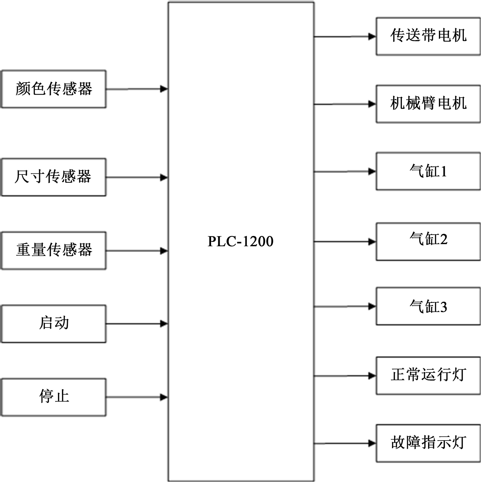 系统整体结构如图1所示,各模块间形成“多传感器→PLC控制→执行机构”的闭环控制,实现了高效、自动化的分拣作业。