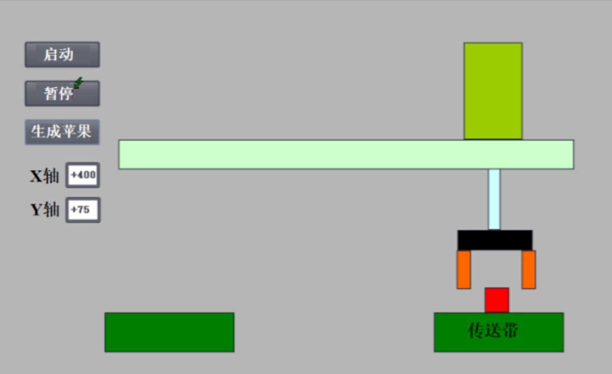 手动操作画面:用于设备调试和维护,可单独点动控制各个气缸、启停传送带或移动机械臂。