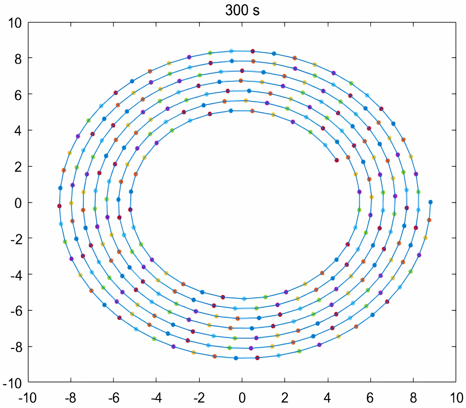 图2. 龙头从初始位置到300 s结束时的位置示意图