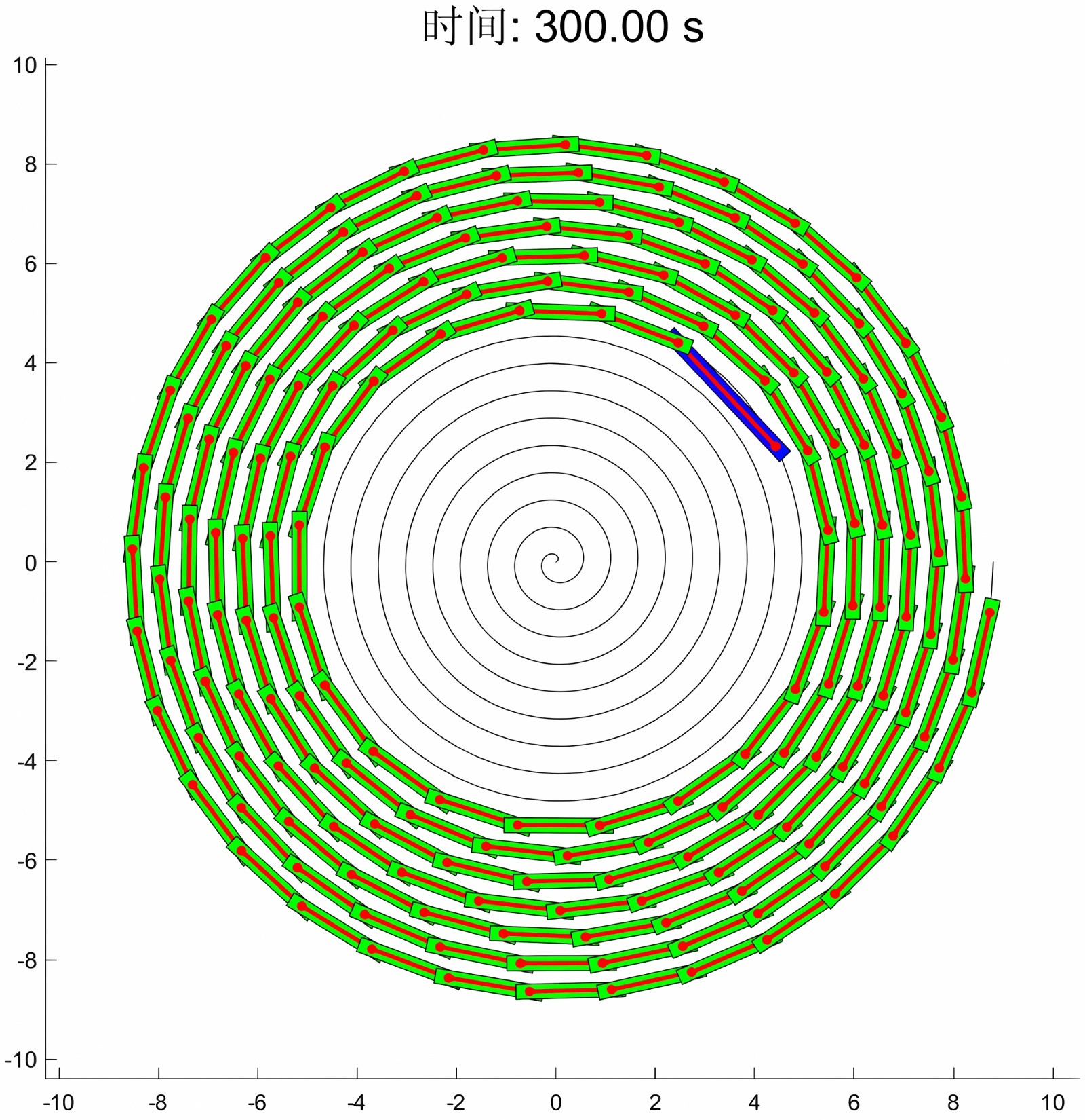 将得到的每一时刻的前把手的位置依次代入,可求得其他时刻各个龙身的位置。因为