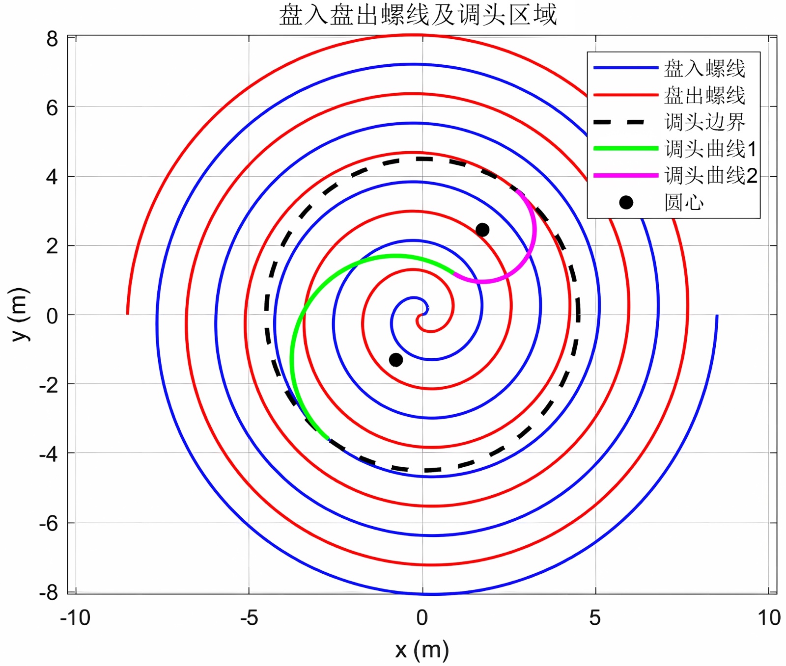 根据上述算法,我们得出板凳龙在螺线掉头时的整体路径如下图6所示: