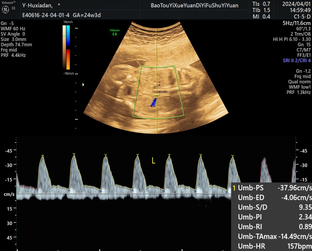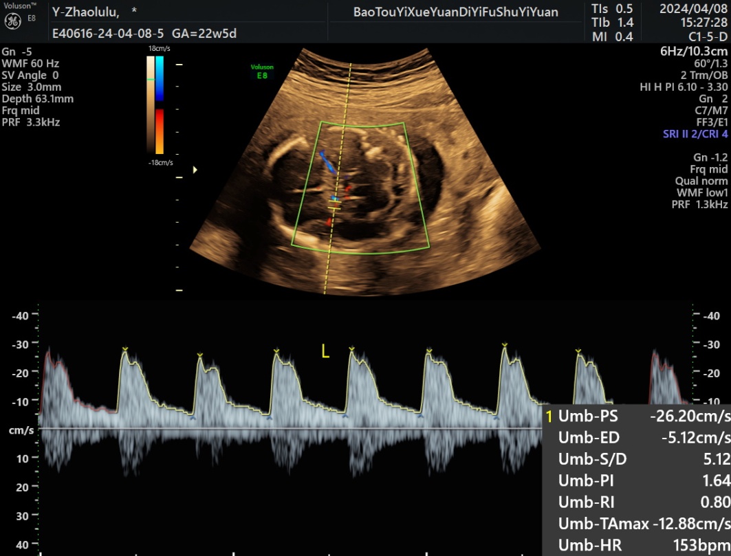 图1. 孕24w3d正常胎儿左侧RA频谱图
