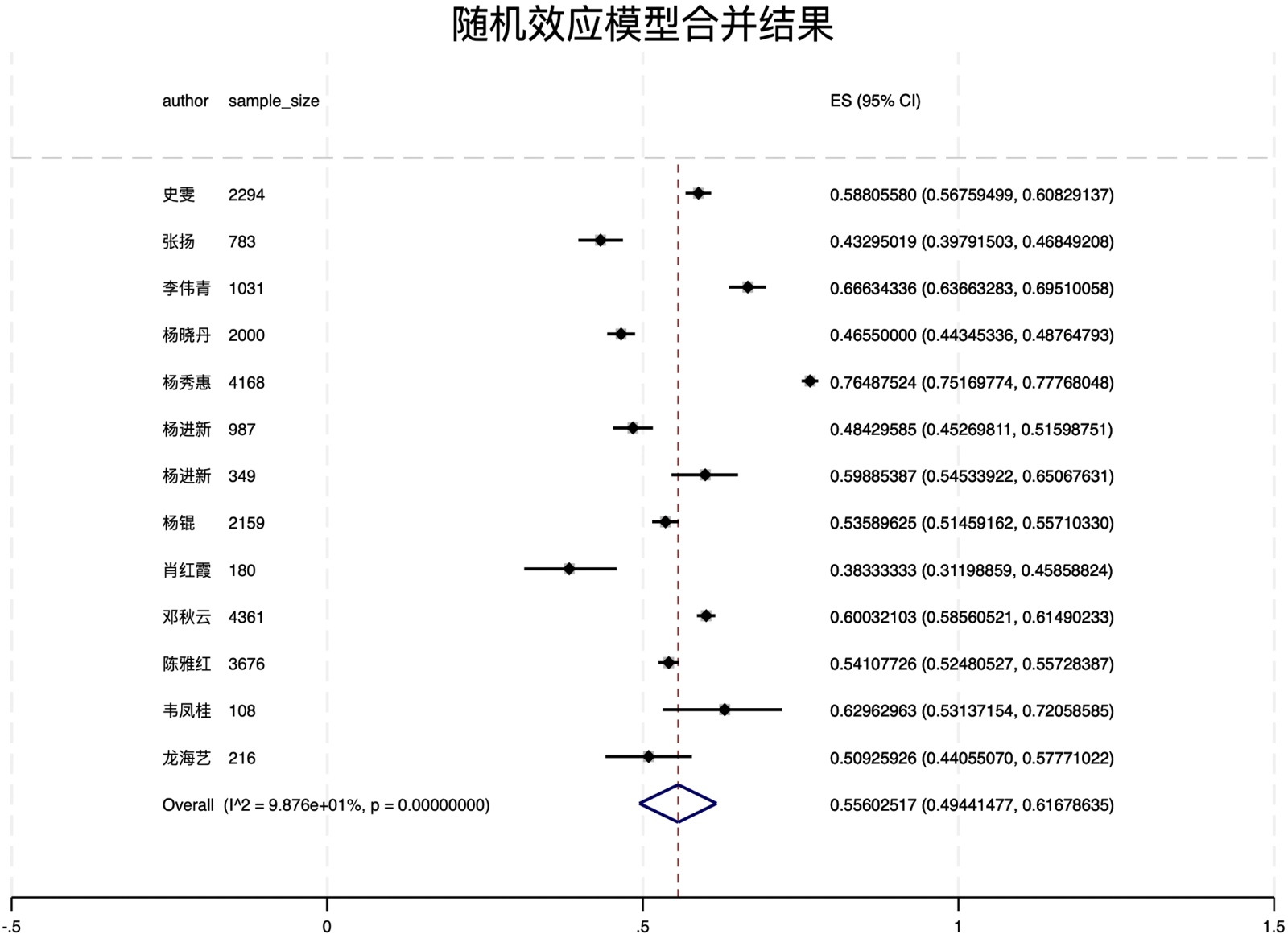 摘要: 抗-HBs阳性率是评估乙肝疫苗免疫效果的关键指标,然而目前相关数据存在两个突出问题:一是局部性调查难以全面反映全国层面的实际水平;二是样本量有限或在低流行地区仍采用传统统计方法,导致估计误差较大,且未能充分利用历史数据,影响了结果的可靠性。为此,本研究采用Meta分析方法,旨在实现对全国人群抗-HBs阳性率的稳健统计推断,为优化乙肝疫苗免疫策略提供可靠依据。通过Meta分析整合13项研究(共计22,312人)发现,中国15~59岁人群抗-HBs阳性率为55.60% (95%CI: 49.44%~61.69%)。敏感性分析显示结果波动范围在±2%以内,发表偏倚检验结果无统计学意义(P = 0.418),进一步证实了研究结果的稳健性。本研究为乙肝免疫策略的优化提供了重要科学依据。基于Meta分析对全国范围抗-HBs阳性率进行的稳健推断,能够更准确地反映普通人群的乙肝疫苗免疫保护水平,有助于公共卫生决策者制定针对性接种计划、合理配置资源,并加强对重点人群的干预措施。