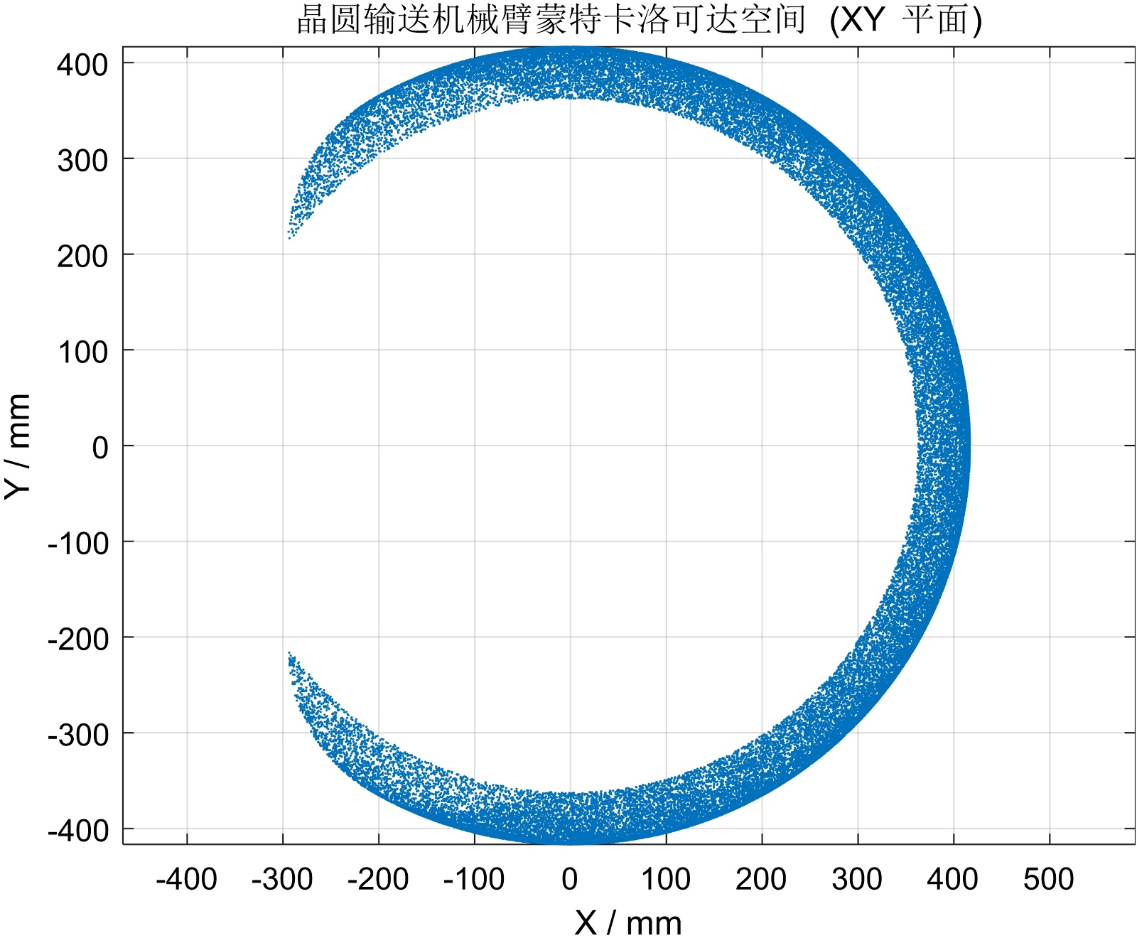 图5. 工作空间在XOY平面的投影