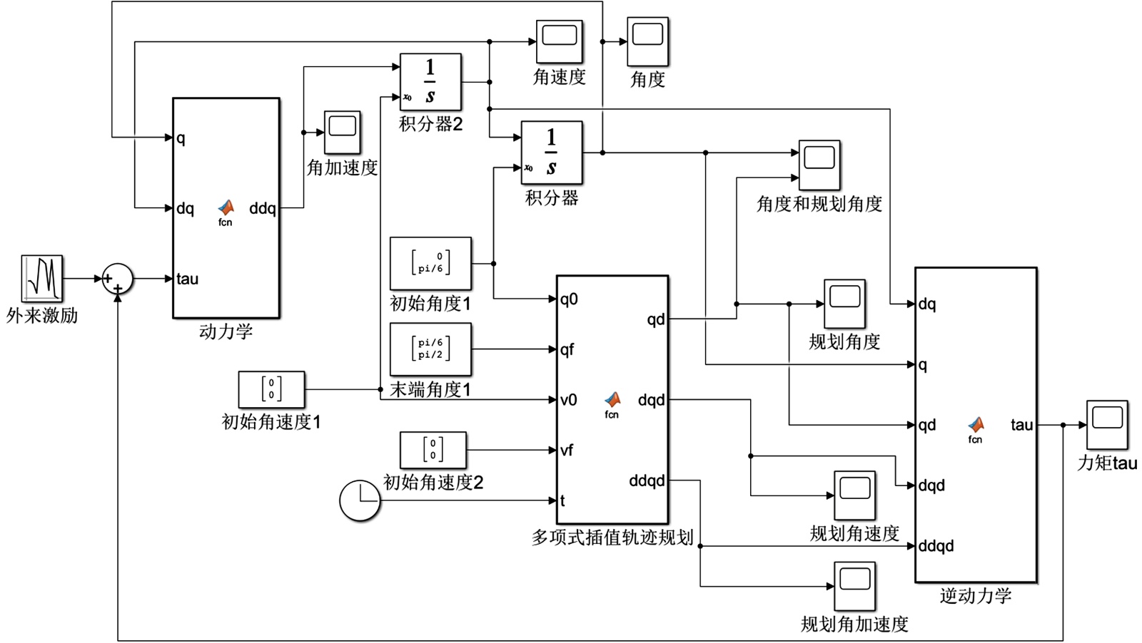 图7. 机械臂仿真系统的Simulink设计