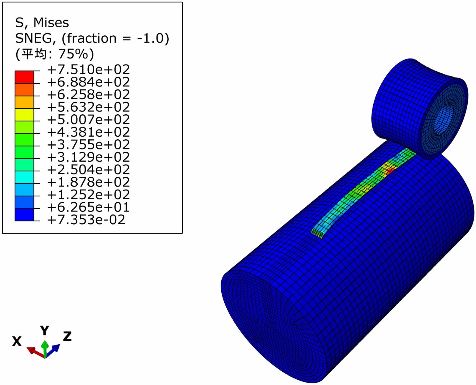 通过有限元软件Abaqus构建热电池电堆极线弯折过程的动态仿真模型以模拟凹面压轮弯折极耳的全过程,分析极线的应力分布和应变分布以及弯折效果。通过仿真结果验证该弯折机构是否能够实现预期的压弯状态,为工艺设计提供理论依据。