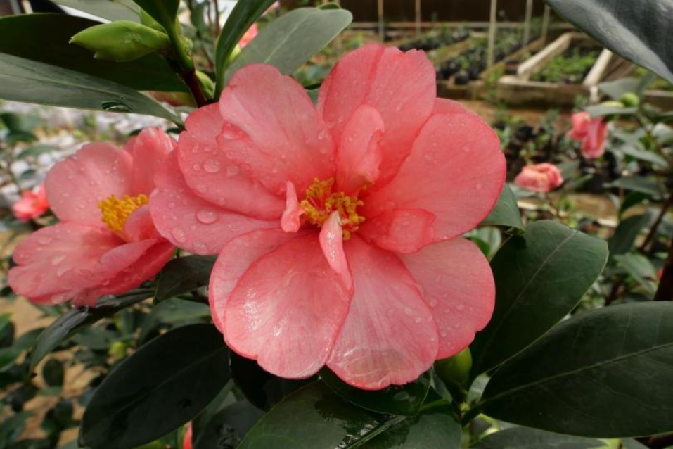 本次选育的4个多季茶花杂交新品种,花期长、花色鲜艳、花型丰富、花径多样,其综合观赏价值可与传统冬春开花茶花品种相媲美。花芽腋生和顶生,花蕾孕育期短,年开花次数与新梢萌发同步,可实现在生长季内连续多次开花。花色以红色系为主,随温度降低而加深。杂种优势显著,植株长势旺盛,新梢粗壮。同等栽培条件下,其年抽梢次数(3~4次)显著多于普通茶花品种(1~2次)。连续多年观察表明,新品种花蕾可多次分批形成,极大延长了整体花期,有效克服了传统茶花品种因花蕾过密、营养过度消耗而导致植株衰败甚至死亡的缺陷。抗逆性方面,新品种表现出良好的耐涝性,盆栽植株根部浸水约20天后,仍能恢复正常生长与开花。其叶片厚革质,深绿色,表面光滑并覆有透明蜡被,与杜鹃红山茶亲本相似,赋予了其良好的耐晒与抗热性状[7]。