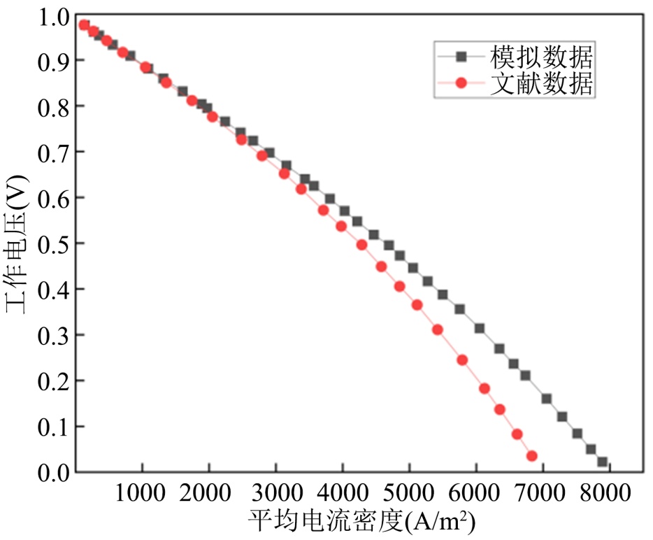 在阴极流道中气体流动方向为从入口到出口,在流动过程中,氧气不断参与反应并被消耗。随着气体的流动,氧气的相对含量逐渐降低。在气体通道中,氧气从入口向出口扩散的过程中,由于扩散速率有限,无法及时补充被消耗的氧气,导致其质量分数沿气体出口方向逐渐降低。