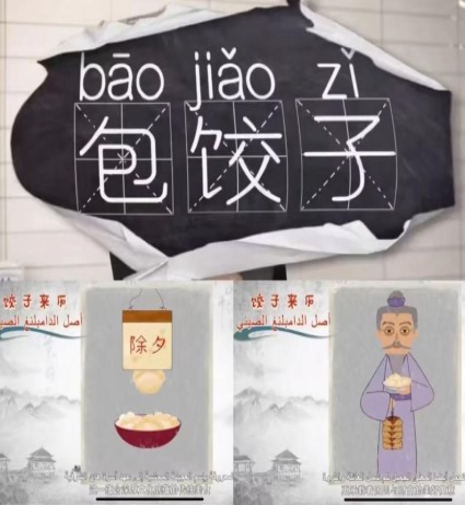 图1. 《yalla学中文》包饺子(图片来源:中阿卫视微信公众号)