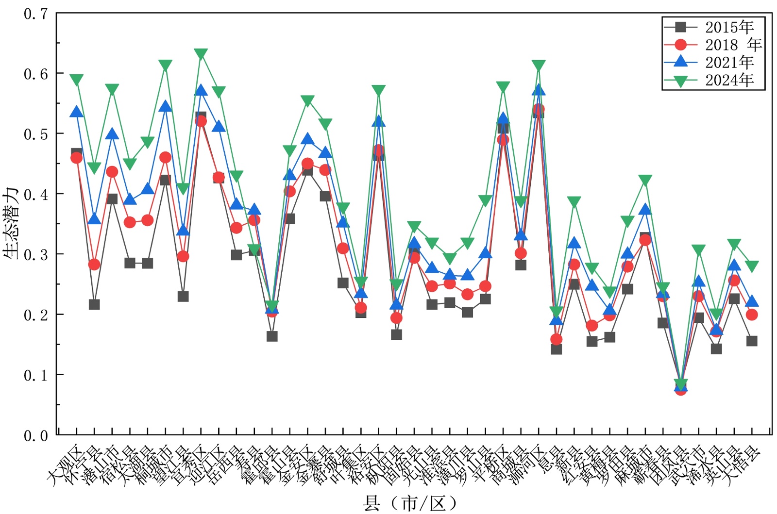 规模与水文调节功能; 3) 重点保护物种数量:指县域内国家及省级重点保护动植物种类的总数,通过林业部门、自然保护区本底调查数据获取。 |