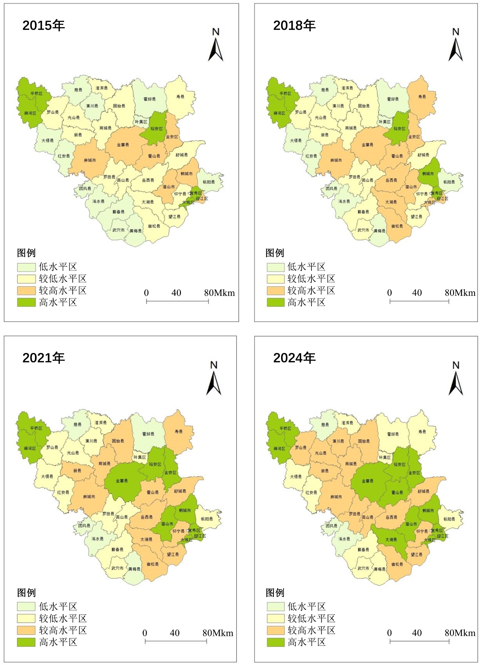 推行“发展权补偿–弹性管控”的生态治理新模式。即对于承担重要生态功能(如水源涵养)而发展受限的地区,实行“发展权转移”补偿。例如,岳西县因保护水源而无法开发的旅游项目容量,可折算成“信用指标”,有偿转让给重点开发区域(如桐城市),转让资金专项用于岳西的生态保护和民生改善。同时,对邻接的高标准区域(如固始县毗邻浉河区),实施“环保标准分期达标”的弹性机制,给予其3~5年的缓冲期,并提供技术升级补贴,避免“一刀切”式管控。